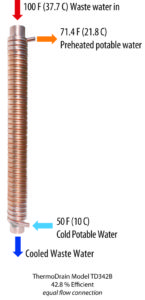 Finalist for Best Green Building Product: ThermoDrain by Ecoinnovation Technologies. Designed to harness the hot water going down the shower drain, this pipe is wrapped with copper tubing for cold water to come in and wind around the warm drain pipe and go to the hot water heater so it will use 30% less energy because the water is prewarmed.