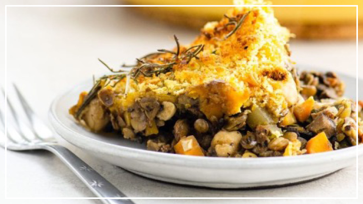 5. Tear up gluten-free bread (dry it out in a toaster first if it is too moist) and put in food processer with destemmed rosemary and chop into crumbs. With the machine on, add the rest of the chopped garlic, lemon zest and drizzle in a tablespoon of olive oil. Sprinkle the seasoned crumbs over the mashed potatoes and put into the oven for 10 to 20 minutes, until hot and bubbly. Finish under the broiler for two minutes, until breadcrumbs are lightly golden. Let sit for 10-20 minutes to set up before serving.