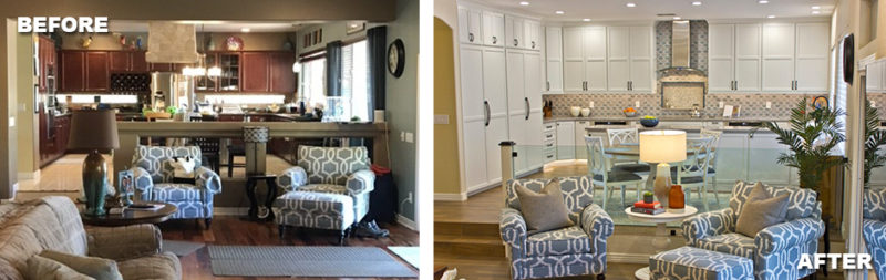 This kitchen and family room were completely transformed.