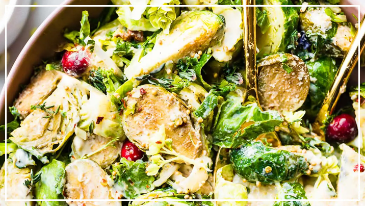 Sauteed Brussels Sprouts Salad with Creamy Cashew Mustard Sauce
